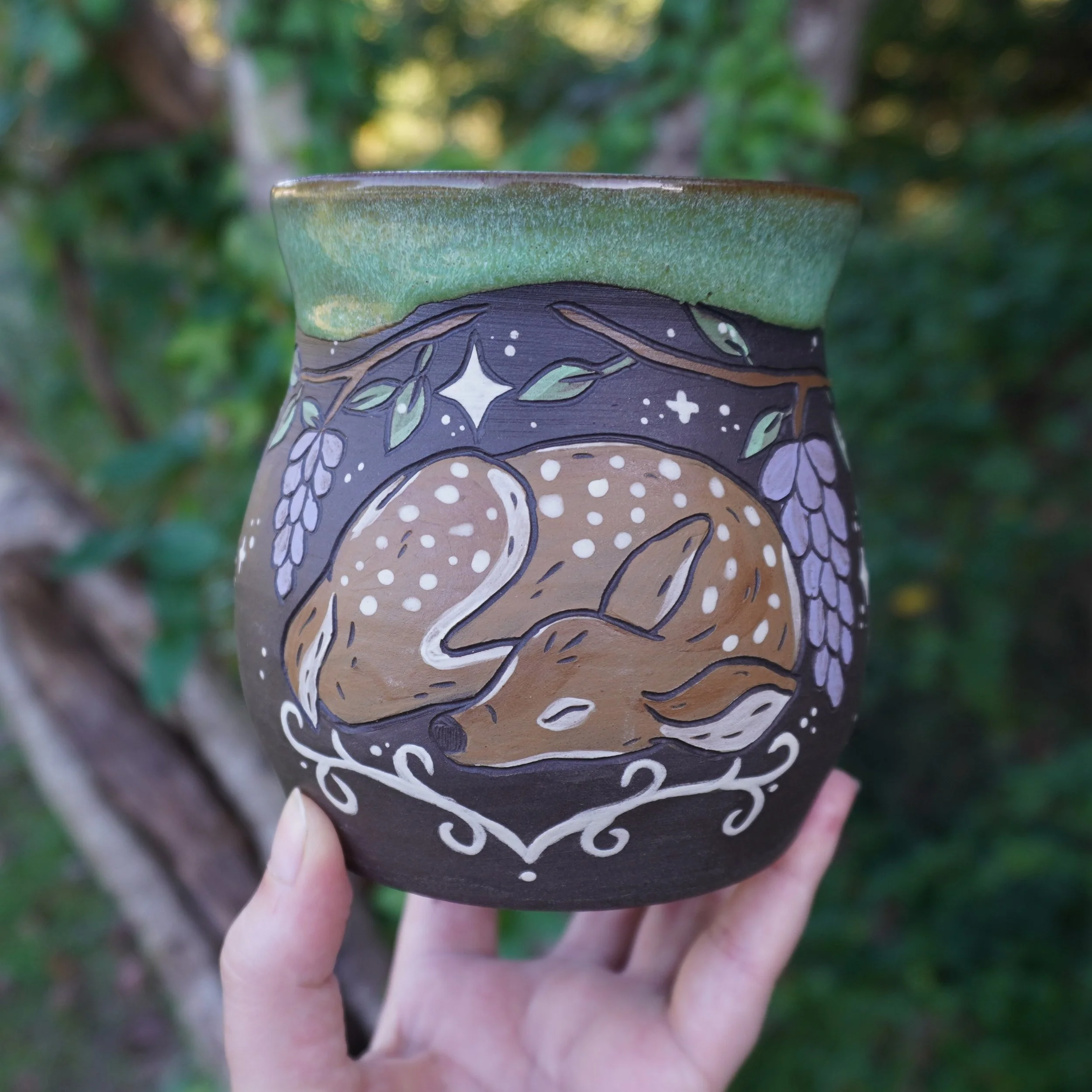 Although these pieces are made to last for many years, please use care. All handmade pottery can be fragile in nature, and Dream Tree Pottery cannot be held responsible for breaks in the future. All glazes and clay used are food and drink safe, and although each piece is dishwasher and microwave safe, gentle, non abrasive hand washing is recommended as sudden changes in temperature may cause stress to the piece. Feel free to reach out with any further care questions or concerns at any time!
